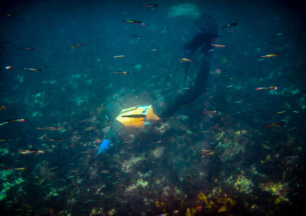 Certaines peuvent rester jusqu’à deux minutes sous la surface. Deux minutes… ça peut sembler facile assis sur une chaise… mais sous l’eau, en bougeant et en ramassant coquillages et oursins, c’est une autre histoire !