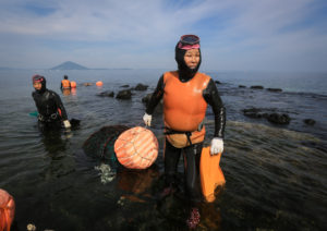 Comme les fermiers sèment des graines, les plongeuses en plantent dans la mer pour que les ormeaux et les conques puissent grandir. © photo Koh